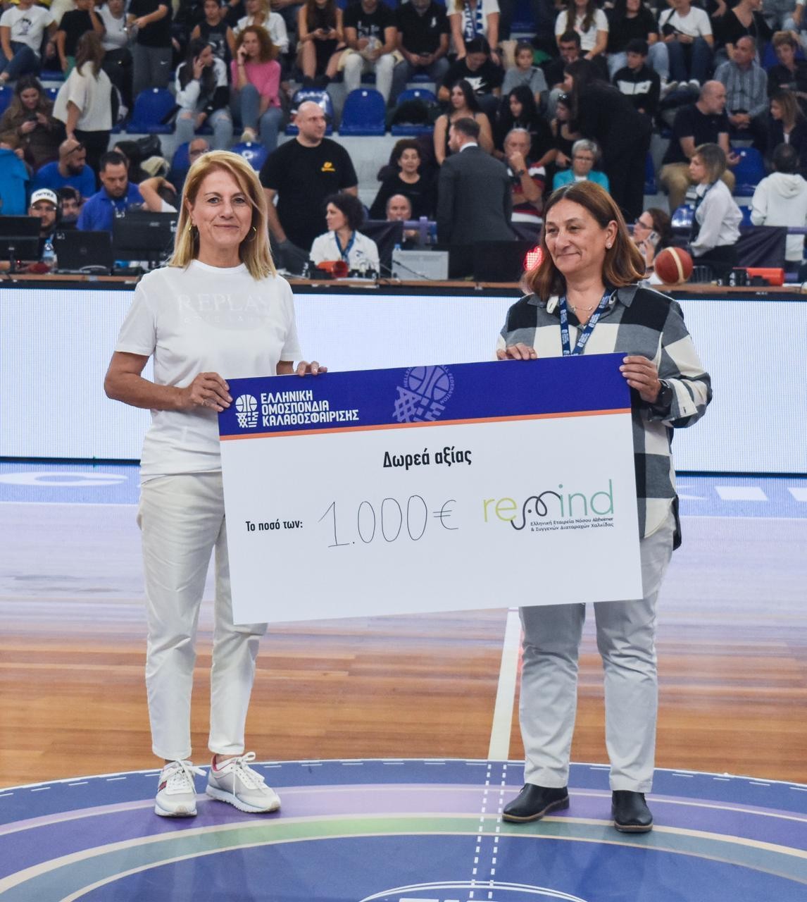 Νικηφόρα ήταν η συνεργασία της REMIND-Ελληνικής Εταιρείας Νόσου Alzheimer και Συγγενών Διαταραχών Χαλκίδας με την ΕΟΚ- Ελληνική Ομάδα Καλαθοσφαίρισης, ενόψει του αγώνα της Εθνικής μας Ομάδας Μπάσκετ Γυναικών με την Τσεχία την Κυριακή 12 Νοεμβρίου στη Χαλκίδα.